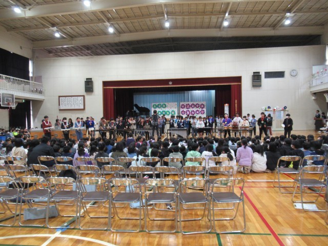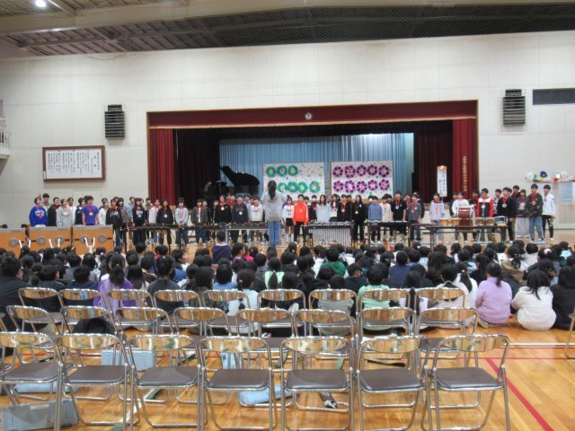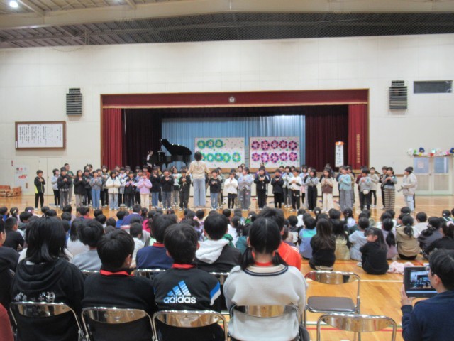 6番目に6年生が在校生へのお礼を込めて、合奏「パラダイス ハズ ノー ボーダー」と合唱「いのちの歌」を発表しました。6年生のノリノリの合奏に見入っていた在校生でした。合唱「いのちの歌」は、命への感謝、日常の何気ない幸福への感謝が伝わってきました。