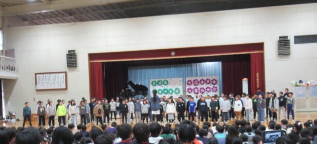 最後は、「TOMORROW」をみんなで歌いました。今年度、全校のみんなで一緒に歌うのは、今日が最後でした。一人一人の精一杯の歌声に、会の大成功を感じました。みんなの心が一つになった素晴らしい「6年生を送る会」でした。