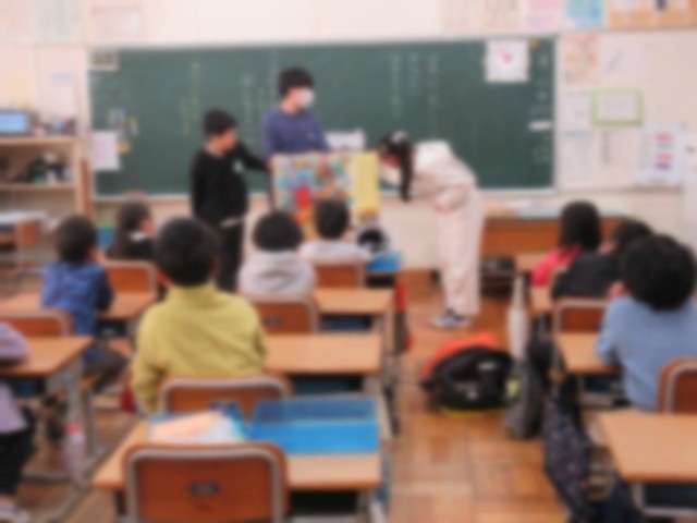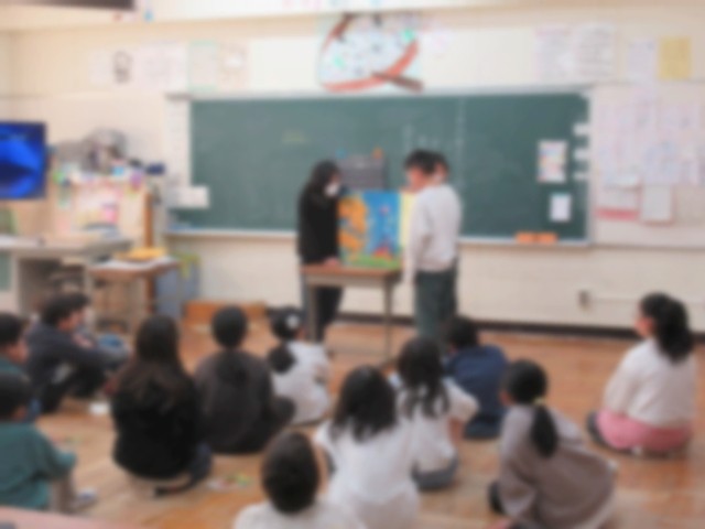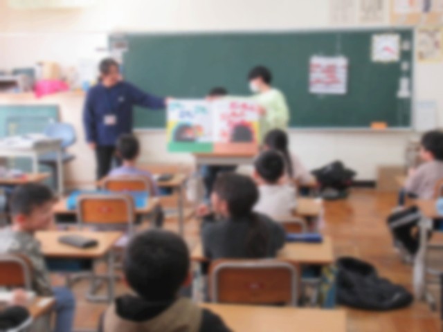 3月2日(月)の朝行事は、図書委員による絵本の読み聞かせがありました。今日は、5~6年生の図書委員が、1~3年生の各教室に行って、大型の絵本を読み聞かせしました。
