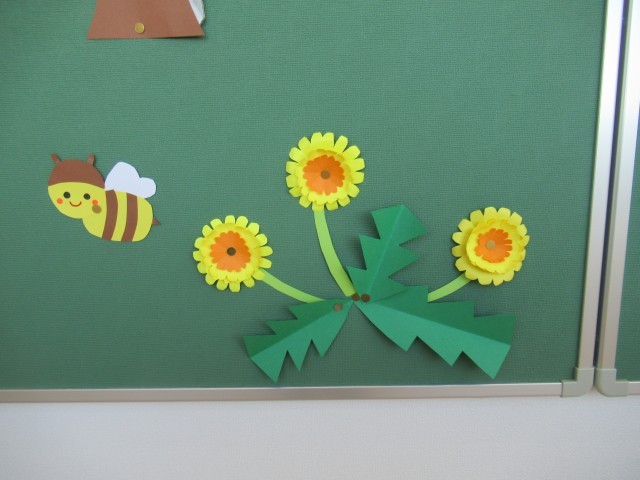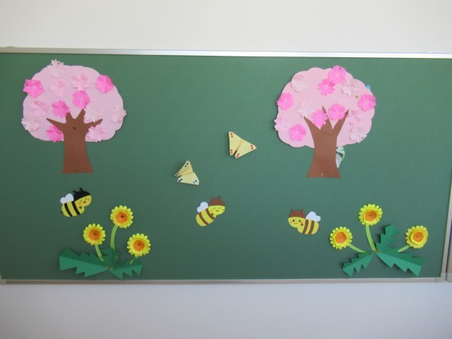 現在は、春らしい桜やたんぽぽ、ミツバチなどの掲示物で飾られています。先日、通級教室にやって来た児童は、「ぶんぶんぶん、ハチが飛ぶ・・・」と歌いながらやって来たそうです。思わず口ずさみたくなる温かい掲示物です。そして、その豊かな気持ちで、ことばの学習が始まっています。