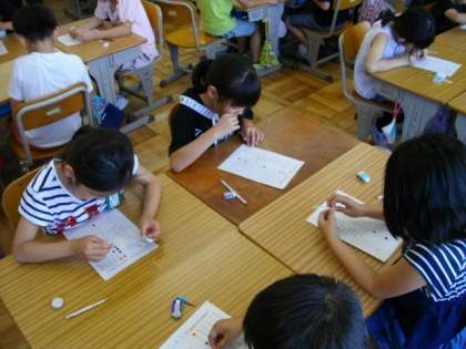 例えば、「元気」という項目が一番多く選ばれた友だちには、どんなところが元気なのかをグループの一人一人が児童一人につき一枚の賞状に書いて、その友だちのよさを見つける授業でした。