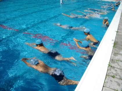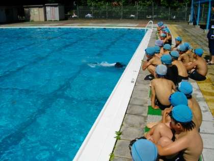 だるま浮き、だるま浮きから回転、伏し浮きからけのび、先生の指導のもと取り組みました。