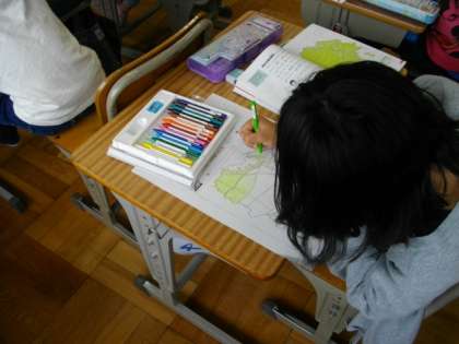 白地図にいろ塗りをして、太田市の特徴を調べます。
