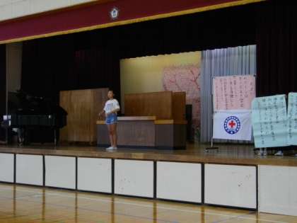 5年生、6年生が参加し、JRC委員会の司会進行で進みました。