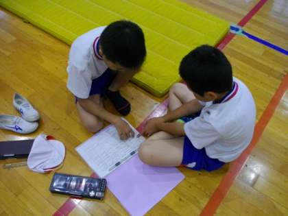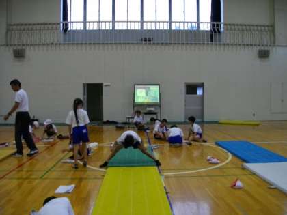今まで学習してきたことのまとめとして、できるようになった技を友だちと一緒に取り組みました。