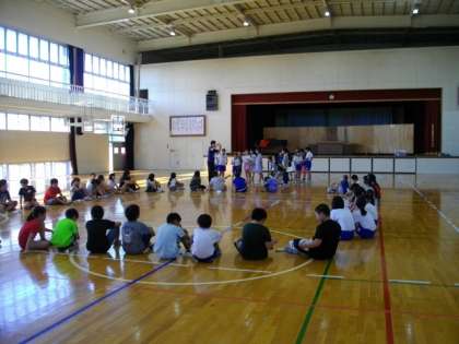 体育館で25日から26日の一泊二日で行われる林間学校の事前学習を行いました。