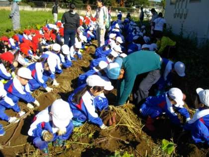 2年生が苗を植えたさつまいもを1年生と2年生が合同でほりました。