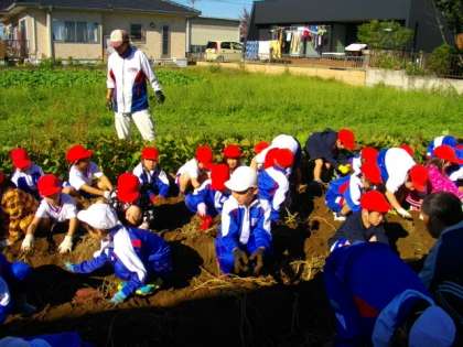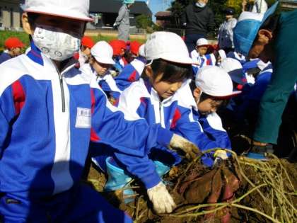 泥だらけになりながら一生懸命にいもの周りを掘り起こして大きなおいもが出てくるたびに、あちらこちらから歓声があがっていました。