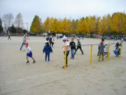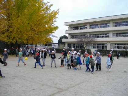寒空の中でしたが、外で元気よく縦割り活動を行いました。