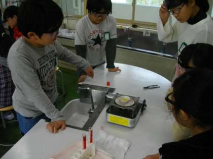 塩酸液に鉄を溶かした液体を蒸発皿に入れ加熱しました。