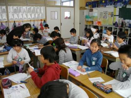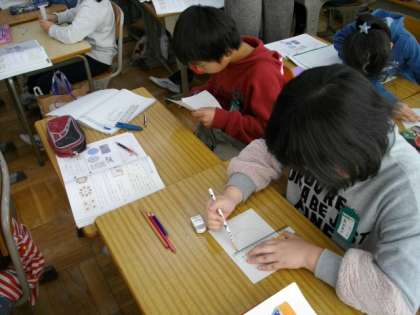 円の図から中心をどのようにしたら見つけられるかを考え、写し取った円の図を使って中心を見つける活動を行いました。
