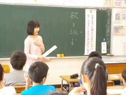 講座は、「魚」というテーマで事前に6年生児童が短歌を作り、先生に下読みしていただき一首一首講評していただきました。優しい語り口で子どもたちの作品のよいところやさらによくなるためのアドバイスを声がけしていただきました。