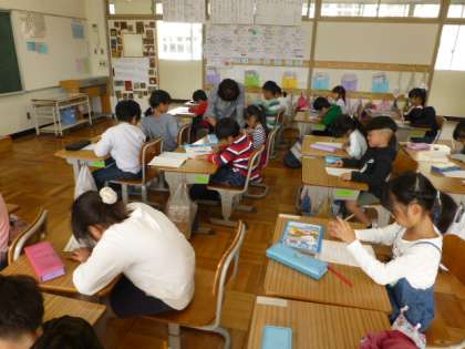 繰り下がりの引き算 プリントで練習問題に挑戦中