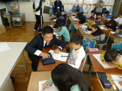 一つの的に対して大勢の参加者が平等に輪投げゲームを行うには、どのように並べばよいのかを考える学習でした。