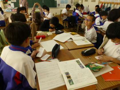 教科書を読んで、自分の考えをメモにまとめ、グループ内で意見交換をしました。