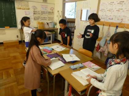 役割分担をして音読の練習をしています。