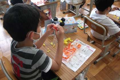 学習キットを使って、電流のはたらきについて学習しています。