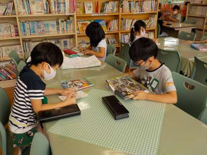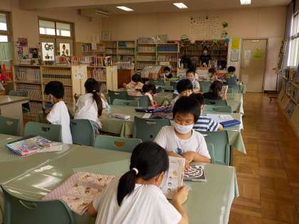 図書室で読書です。 好きな本や読みたい本を選んで静かに読みます。