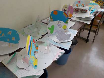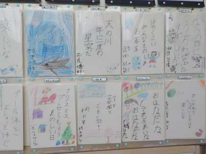 教室前の廊下に掲示されている作品です。