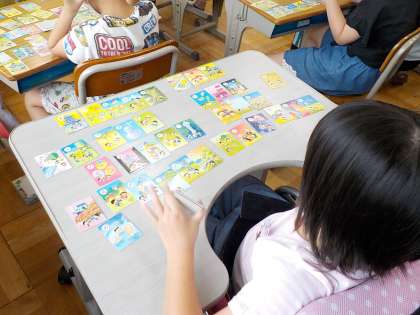 自分の机の上に絵札を並べます。
