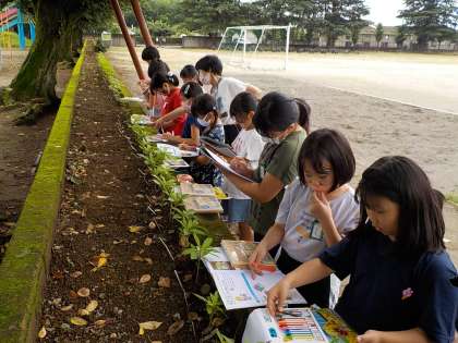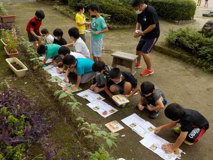 ホウセンカとひまわりの生長 観察記録を書いています。