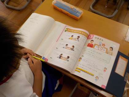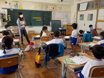 お友だちの前で説明します。その説明に別のお友だちが補足説明を加えていました。