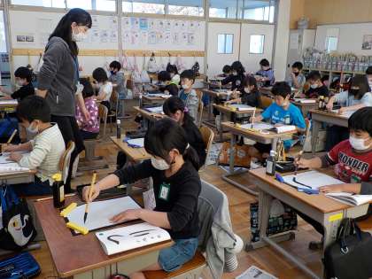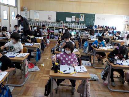 先生の話をよく聞いて、お手本をよく見て、しっかりとした文字を書いていました。