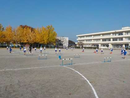 高さのちがうハードルを使い、各自に合わせて、ハードル走を練習しています。