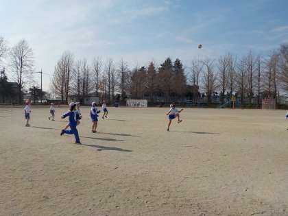 「サッカー」 小さなゴールで少人数のサッカー型ゲームに取り組みました。