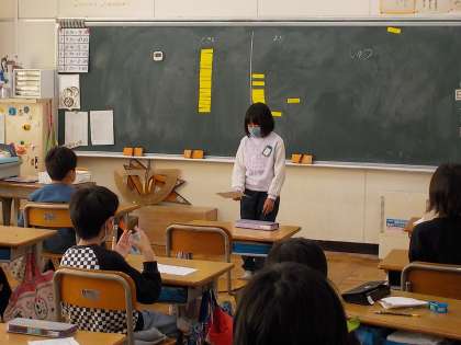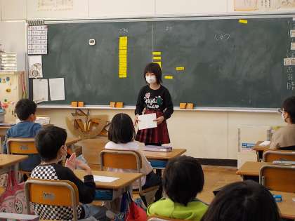 メモを元に上手に発表していました。聞いている友だちからは、質問が出されていました。
