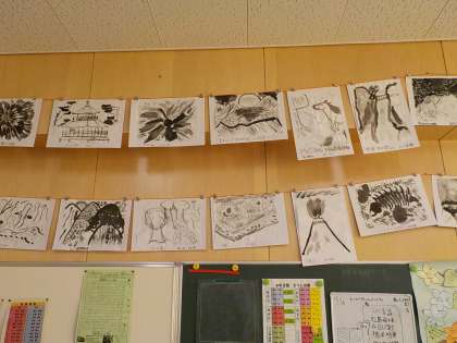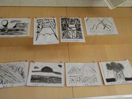 教室に掲示されている作品です。 水墨画 藪南の雪舟?!