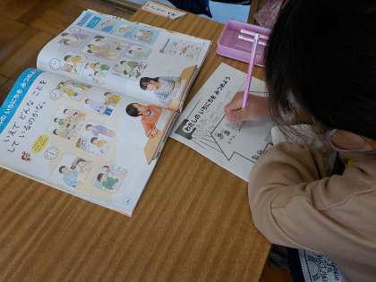 朝起きてから学校へ登校するまでにどんなことを行うのかを振り返りました。