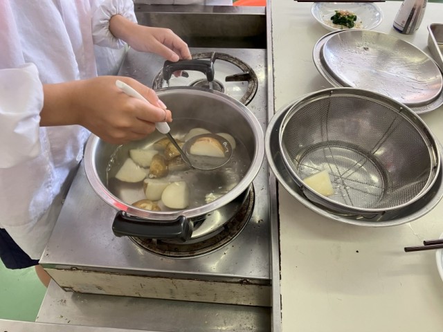 給食を食べた後の調理自習であっても、自分たちで苦労して調理したほうれん草とじゃがいもは格別のようで、しっかり完食していました。