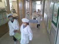 今日の献立は「わかめご飯 牛乳 鶏肉のごま照り焼き お雑煮 手作りさつまいもと栗の蒸しケーキ」給食当番さんが、お雑煮のお餅を上手に等分して配っていました。蒸しパンはほんのり甘く、他の料理もどれもおいし...