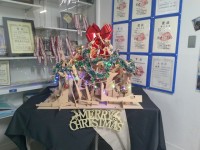 1学期に作った伝言板の端材を使って、5年生がクリスマスツリーを作りました。(図工・美術の先生がきれいに仕上げてくれました。)プラッツの帰りに、お家の人と見に来てくれたところをパシャリ📷「ここの部分は私...