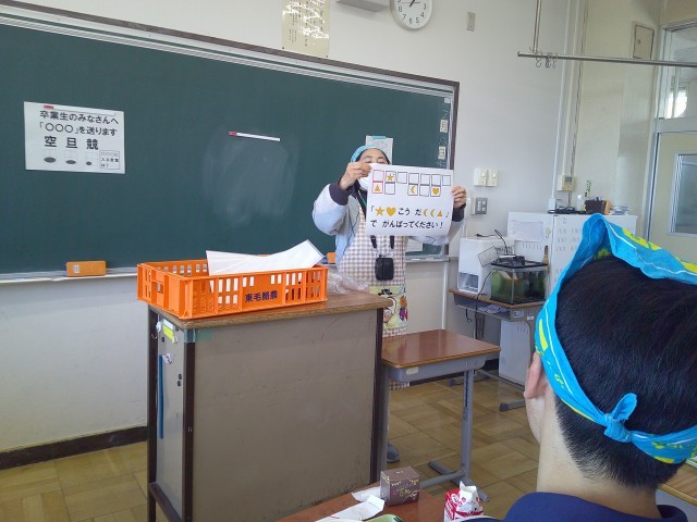 栄養教諭の先生から、最後のメッセージはクイズ形式でした。