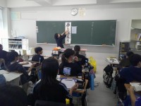 美術部は、北杜祭のステージを飾る大きな壁画づくりをしていました。