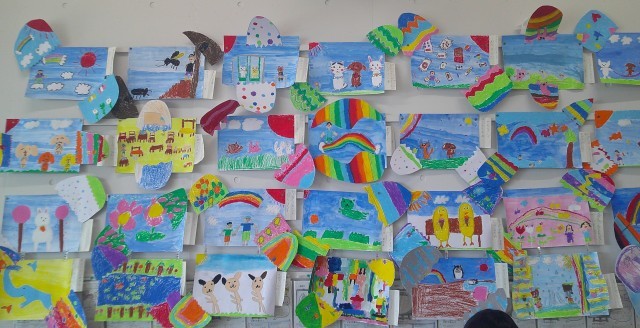 「お話から生まれたよ~うみきりん~」読んだり聞いたりしたお話から思い浮かんだのはどんなことかな。