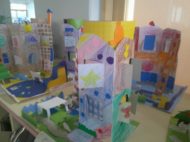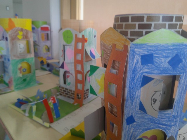 「まどをあけたら」カッターナイフでどんどん切って窓を開けよう。どんな形の窓ができるかな。