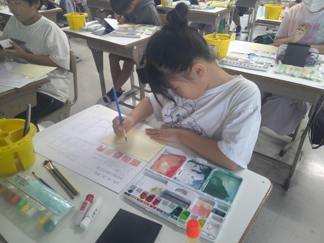 子供たちも、いろいろな技法を教わり、「楽しかった!!!」「早く本番の絵が描きたい」と誰もが満足の笑顔でした。