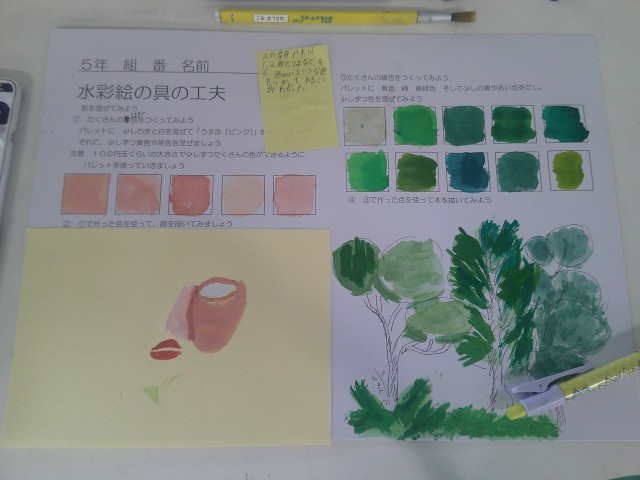 「いろいろな色を作ることで、立体的でリアルな色になった。林間学校の野外炊事の絵で試してみたい」