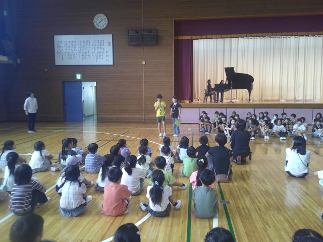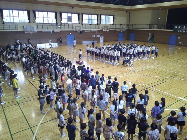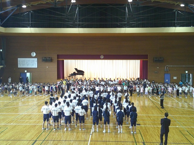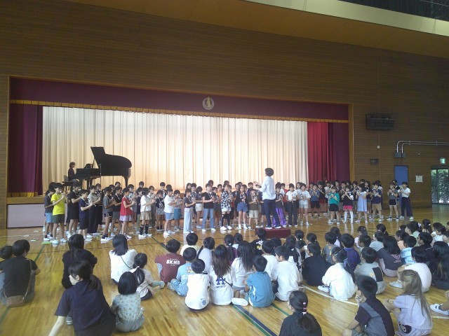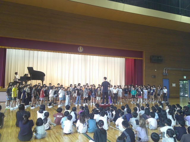 北杜祭合唱コンクール・校内音楽発表の部 公開日 2025/10/06 更新日 2025/10/06 学校長より 「北の杜タイム」の時間に1~4年生と9年生が第1アリーナに集まりました。最初に、全員で校歌を歌いました。次に4年生と9年生が披露しました。 4年生:リコーダー奏「テルーの唄」 斉唱「ツバメ」 9年生:学年合唱「時を超えて」最後は、全員で「世界が一つになるまで」を心をこめて歌いました。素晴らしい歌声ときれいなハーモニーにとても感動しました。 +3