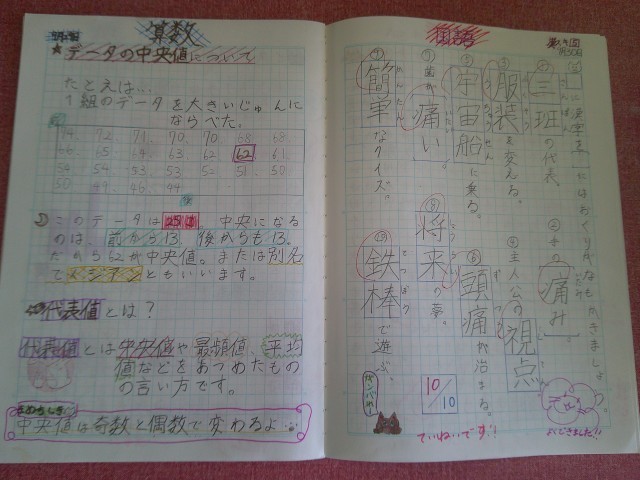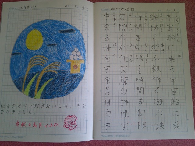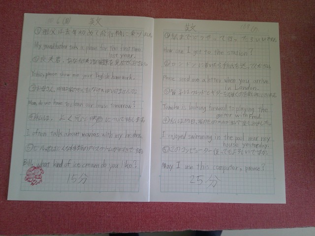 歴史の勉強や漢字練習、時にはイラスト、英文まで頑張っています。