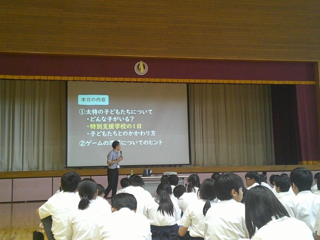 7年生 ふれあい交流会に向けての事前学習 公開日 2025/10/08 更新日 2025/10/08 学校長より 7年生は、総合的な学習の時間で「福祉」について学習をしています。 今年もまた、太田特別支援学校の3、4年生を迎えて、ふれあい交流会を実施する予定です。今日は太田特別支援学校の先生に、講師になっていただき、いろいろお話をしていただきました。ぜひ、お家でも話題にしていただけるとうれしいです。