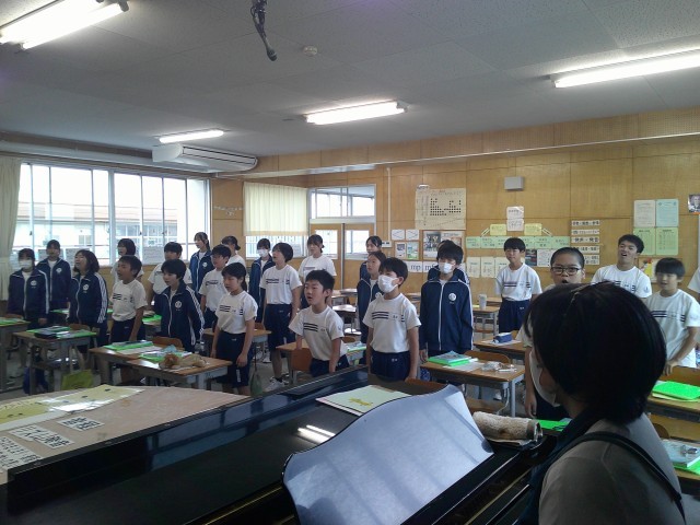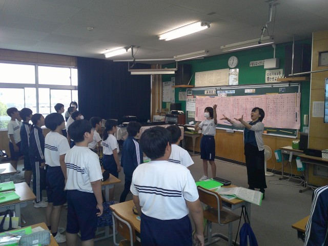 7年生の合唱練習です。発声練習は姿勢から確認していました。