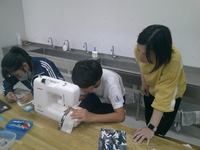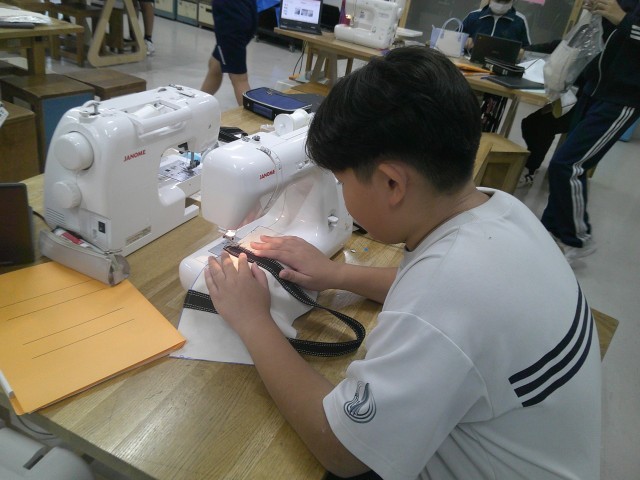 ミシンの操作は手慣れた者で、まっすぐきれいに縫えていました。