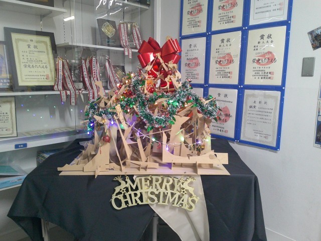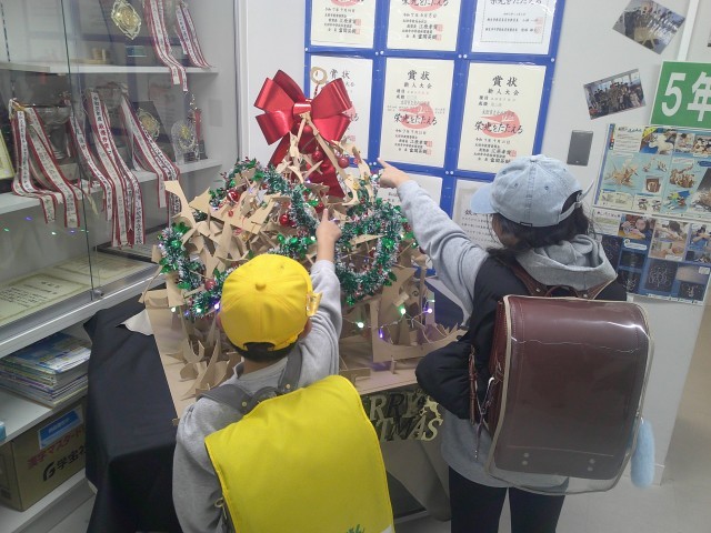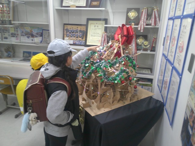クリスマスツリー🎅🎄🎅 公開日 2025/11/27 更新日 2025/11/27 学校長より 1学期に作った伝言板の端材を使って、5年生がクリスマスツリーを作りました。(図工・美術の先生がきれいに仕上げてくれました。)プラッツの帰りに、お家の人と見に来てくれたところをパシャリ📷「ここの部分は私が担当したの。」きれいなツリーに仕上がってよかったね!!! +1