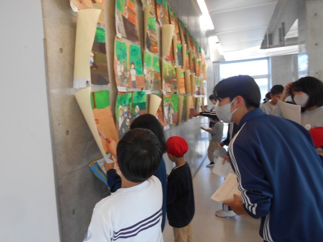 北杜祭第2部 作品発表の部 公開日 2025/12/01 更新日 2025/12/01 学校長より 11月28日(金)にたてわり班で、各学年の作品を見て回りました。 「色合いがステキだね。」「きれいな形にできたね。」「絵の具の使い方が上手だね。」ふわふわ言葉が飛び交い、ステキな時間を共有することができました。前期課程のみんなもお兄さん、お姉さんにいっぱい褒められたので、とってもうれしそうでした。 +3