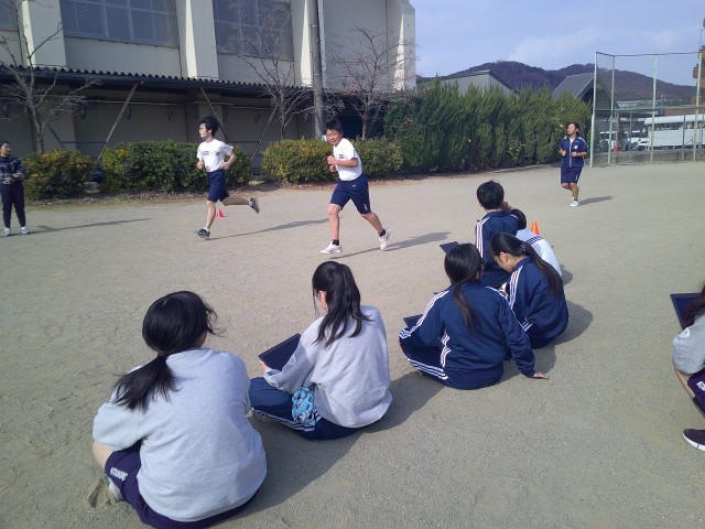 7年生 体育 公開日 2025/12/02 更新日 2025/12/02 学校長より 7年生は、持久走の練習をしていました。ウォーミングアップの後、女子は1000m、男子は1500m ペアになって、タブレットで記録を記入。青空の下、競い合う友達を見つけ、切磋琢磨して頑張っていました。