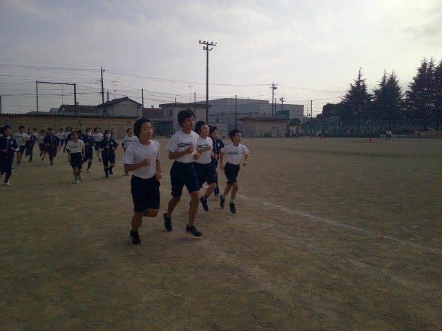 6年生は、「ペース走」 心拍数をはかって、練習していました。